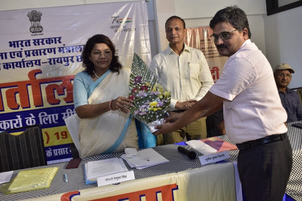 सूचना एवं प्रसारण मंत्रालय, भारत सरकार के पत्र सूचना कार्यालय (पीआईबी) रायपुर द्वारा केन्द्रीय जनजातीय कार्य मंत्रालय की राज्यमंत्री श्रीमती रेणुका सिंह सरुता के मुख्य आतिथ्य में ‘वार्तालाप कार्यक्रम का आयोजन 19 सितंबर, 2022 (सोमवार) को दोपहर 11.00 बजे से किया गया।